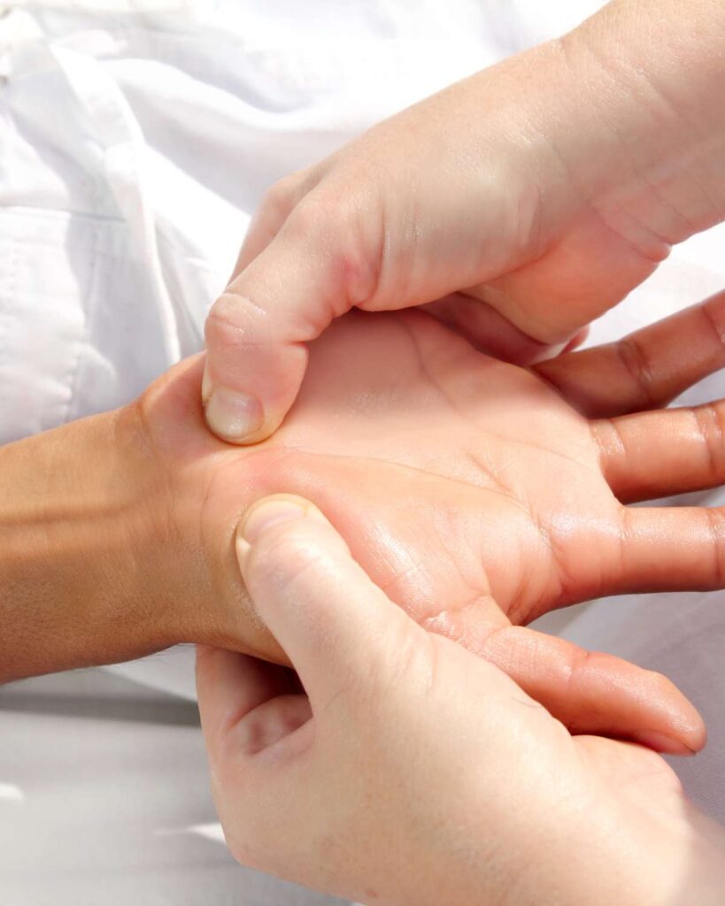 Estimulación de puntos reflejos que corresponden a órganos y sistemas del cuerpo para equilibrar la energía vital